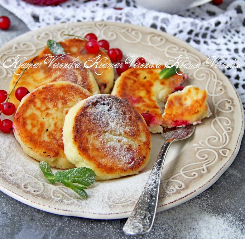 Вкуснейшие, нежные, аппетитные сырники с клюквой подать к столу с пылу с жару.