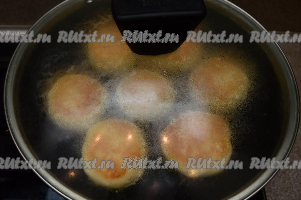 Ещё раз перевернуть сырники, накрыть их крышкой, выключить огонь и дать им пропариться в течение 3-5 минут.
