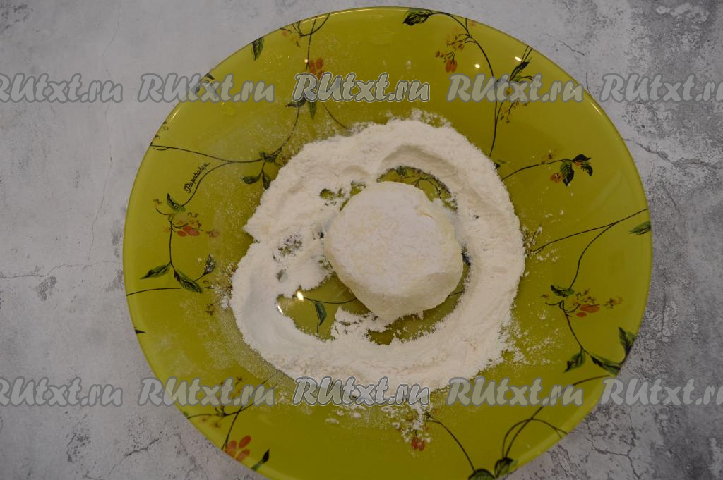 На небольшую тарелку насыпать муку. Обвалять сформированный сырник в муке со всех сторон.