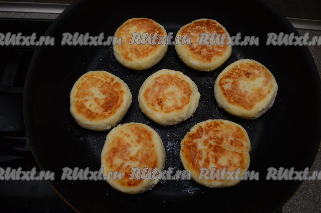 Затем сырники перевернуть и обжарить их с другой стороны в течение 3-4 минут (до появления румяности с другой стороны).