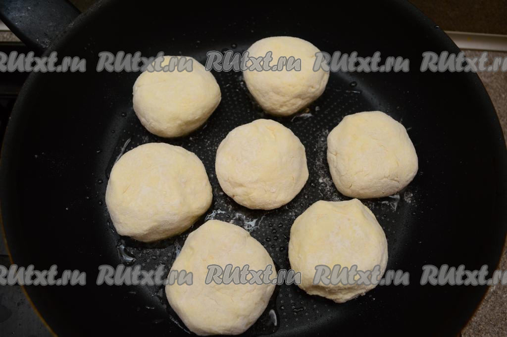 Тесто зрительно разделить на 7 равных частей. Влажными руками из каждой части теста сформировать круглый сырник.