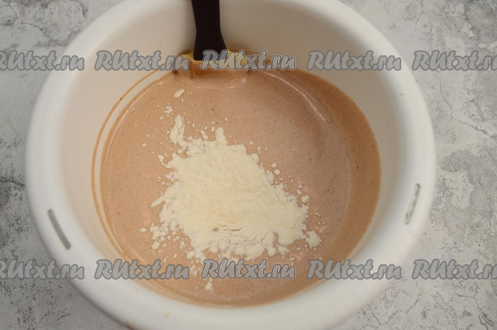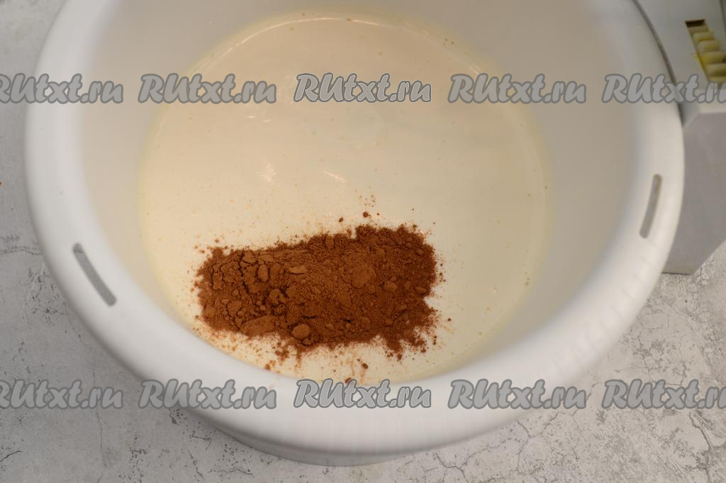Затем всыпать какао и перемешать миксером на небольших оборотах до однородности.