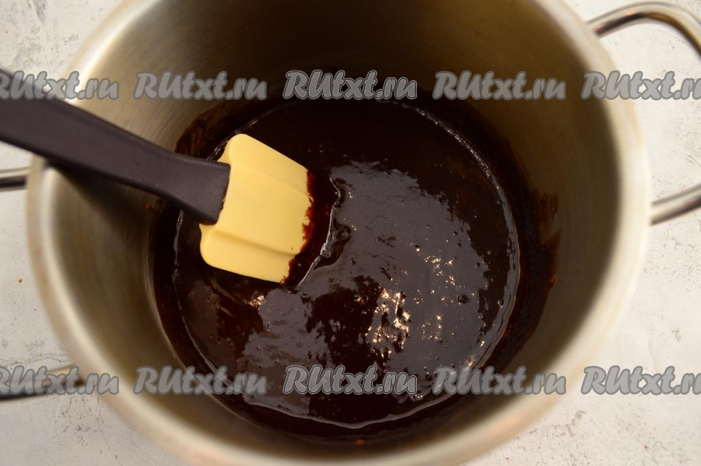 Поставить кастрюлю на средний огонь и, постоянно помешивая, довести массу до кипения. Затем добавить сливочное масло.