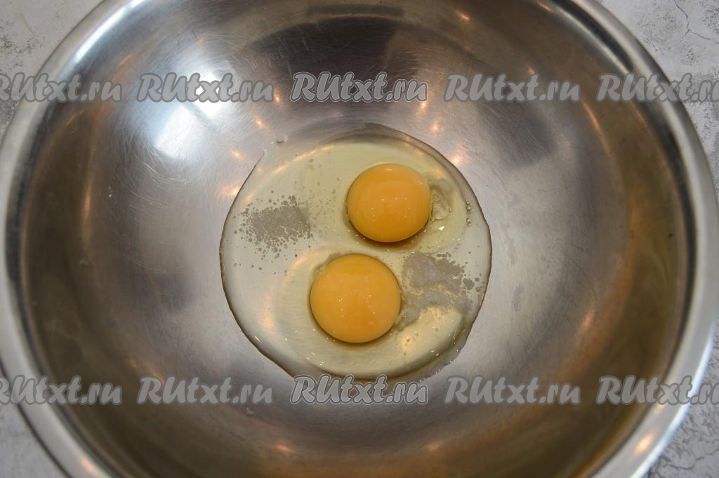 В миске соединить яйца и 2 хороших щепотки соли.