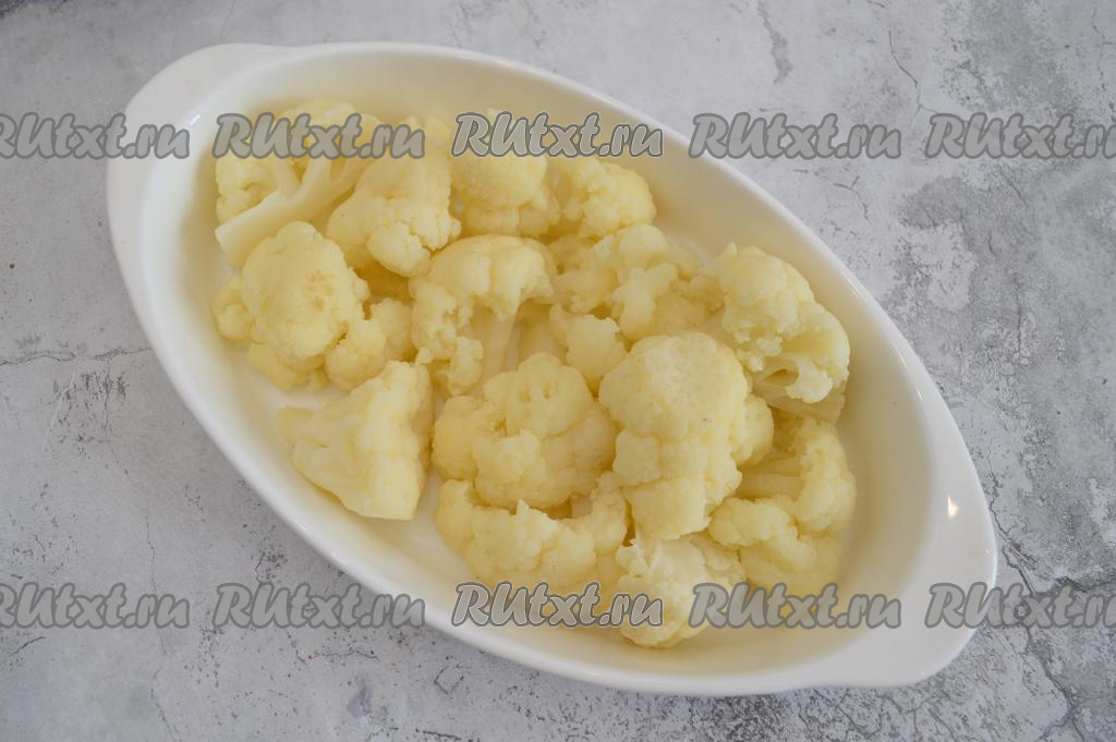 В форму для запекания выложить в один слой остывшие соцветия цветной капусты.