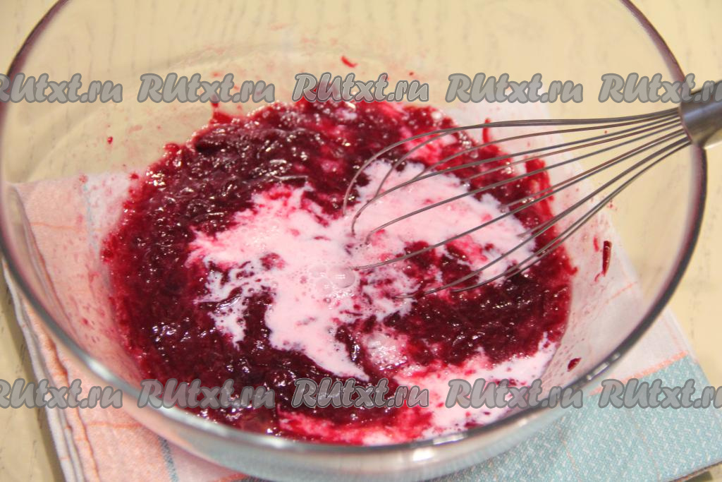 Перемешать тесто венчиком до однородного состояния. Добавляя частями оставшуюся просеянную муку и полностью вмешивая её в тесто венчиком, учитывайте, что свекольное вафельное тесто должно получиться, как достаточно густая сметана.
