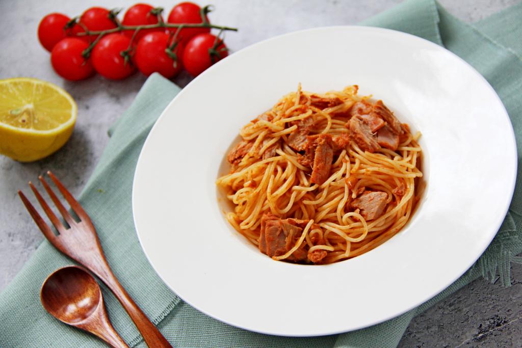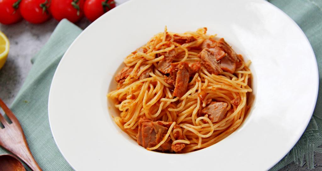 Предлагаю на обед или ужин подать к столу спагетти с консервированным тунцом. Это блюдо готовится и просто, и достаточно быстро, а получается вкусным, аппетитным, сочным и сытным. Спагетти в сочетании с кусочками консервированного тунца отлично разнообразят меню!