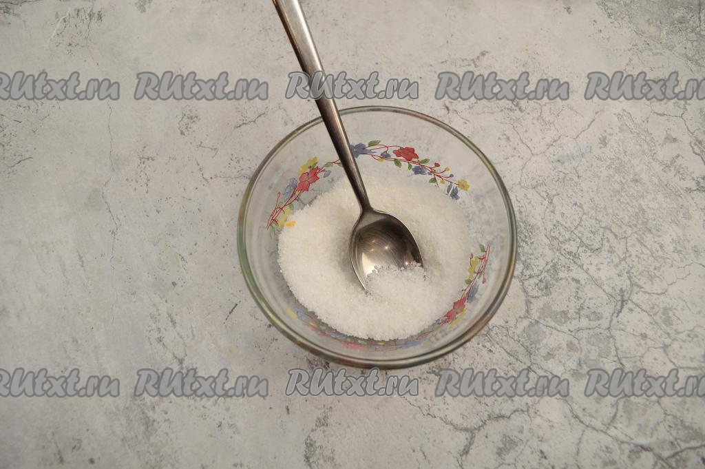В небольшой пиале соединить сахар и соль, перемешать. Если у вас рыбка большего размера, чем 1 килограмм, тогда пропорционально увеличьте количество сахара и соли.