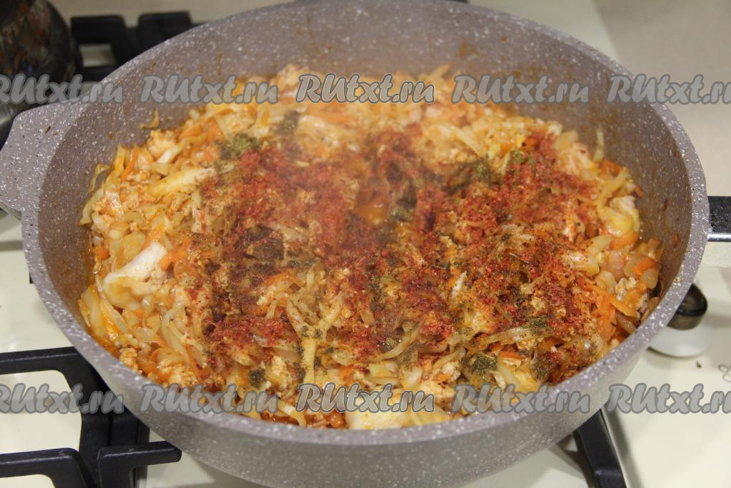 Потомить ещё минут 10 (до мягкости капусты) под крышкой, а затем снять с огня.