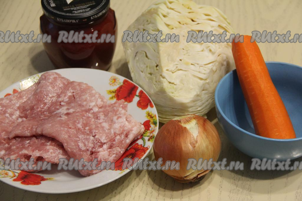 Подготовить продукты. Лук и морковь почистить. Я взяла покупной свиной фарш, но можно приготовить фарш и в домашних условиях, пропустив кусочки мяса (например, свинину, курицу или индейку) через мясорубку.