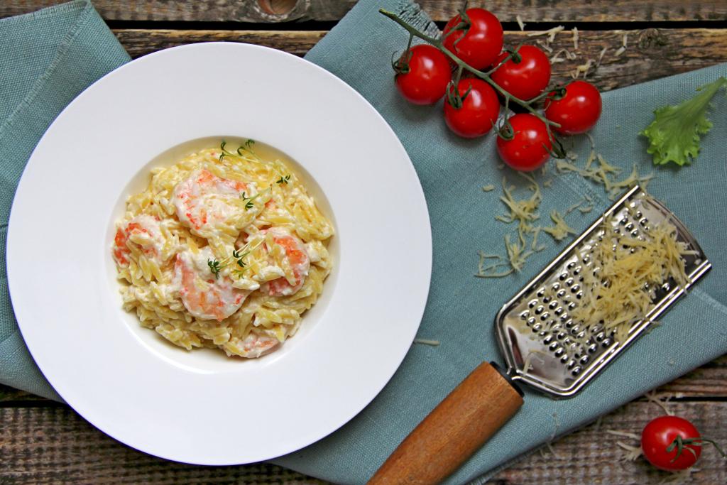 Аппетитная, нежная паста "Орзо" в сочетании с креветками в сливочном соусе станет полноценным обедом или ужином для вас и ваших близких!