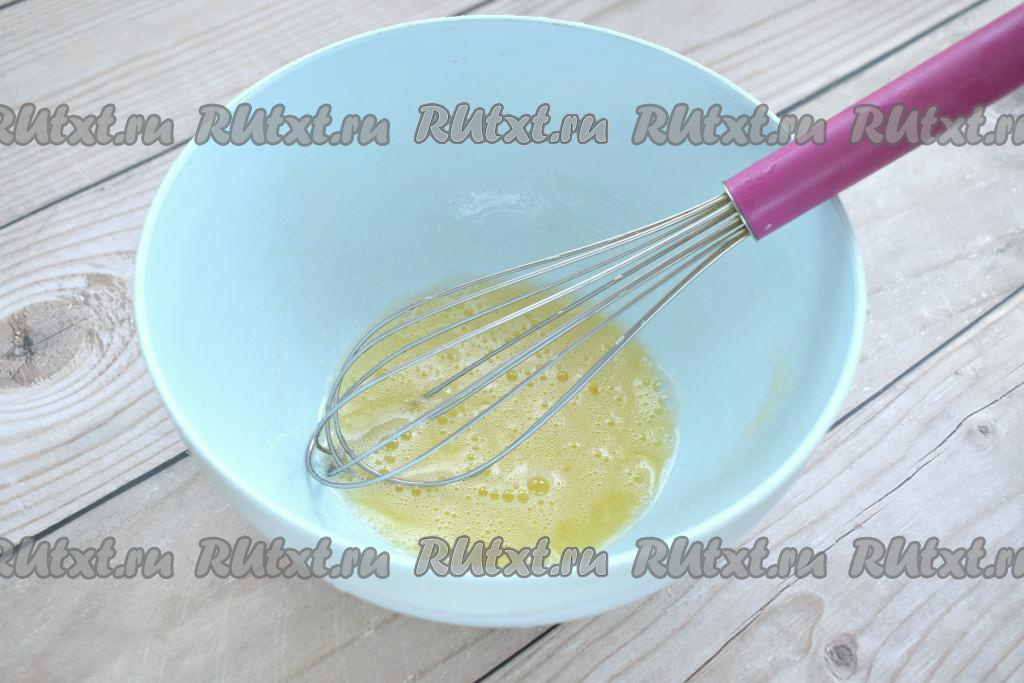 Молоко подогреваем на плите (или в микроволновке) до комнатной температуры. В глубокую миску разбиваем яйца, всыпаем сахар, соль и взбиваем венчиком до однородности.