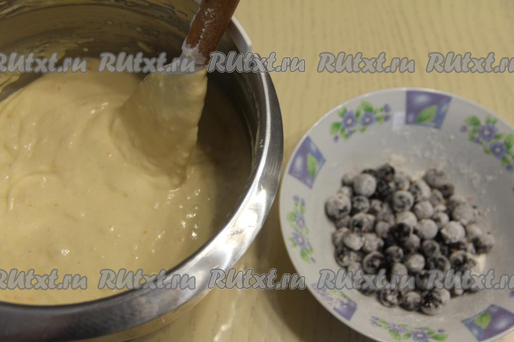 Благодаря тому, что ягоды предварительно были обвалены в муке, они будут равномерно распределяться по тесту.