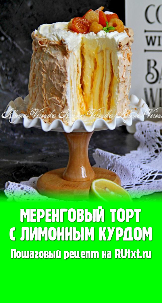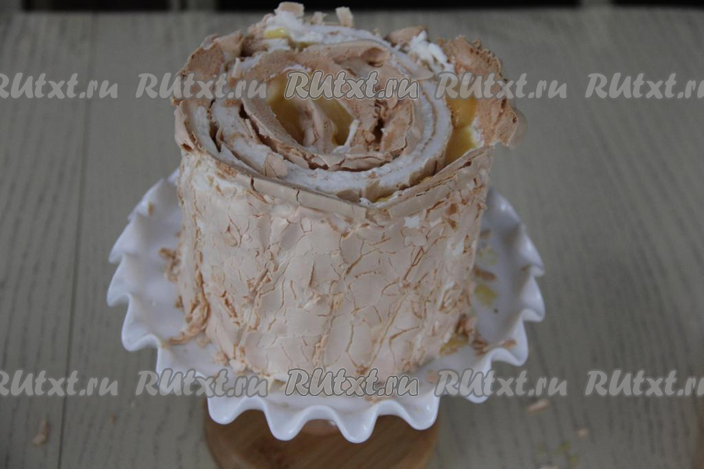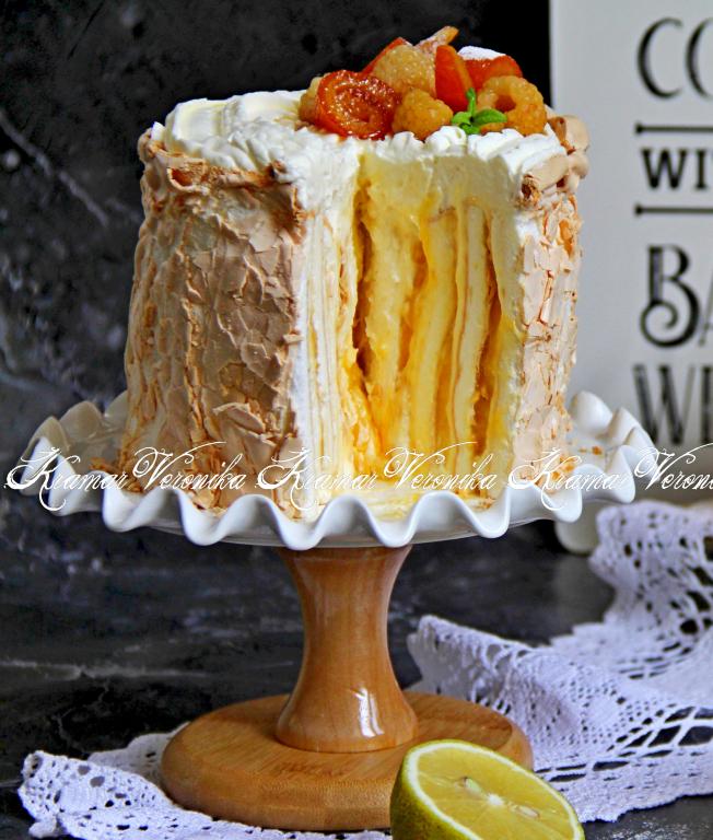 Предлагаю приготовить вкусный, нежный, воздушный меренговый торт с лимонным курдом. Я сформировала его в виде улитки, получился высокий, круглый торт. Этот аппетитный, ароматный торт из меренги (безе) буквально тает во рту. Такой десерт украсит не только домашнее чаепитие, но и праздничный стол!