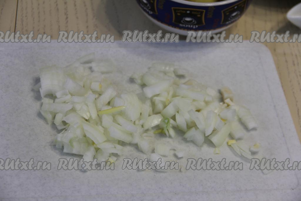 Лук мелко нарезать.