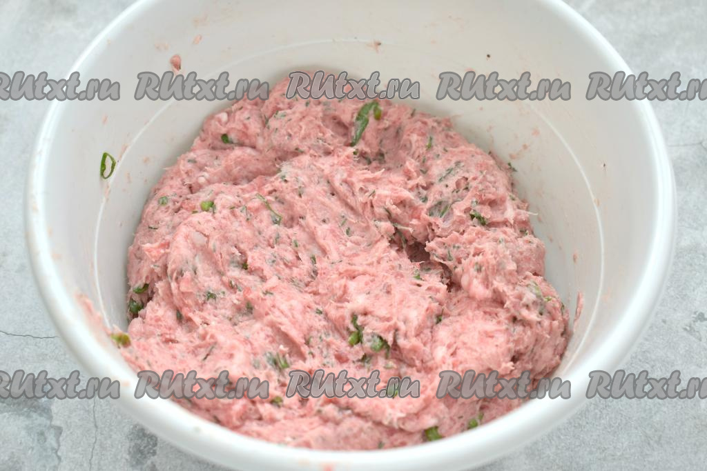 Тщательно вымешиваем фарш с зеленью и начинка для пельменей готова.