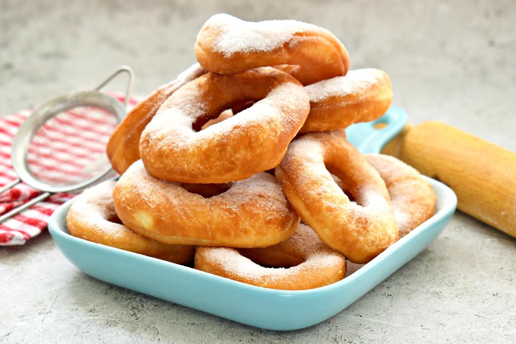 Пончики, замешанные на живых дрожжах, получились нежными, мягкими и очень вкусными, посыпаем их сахарной пудрой и подаём к столу.