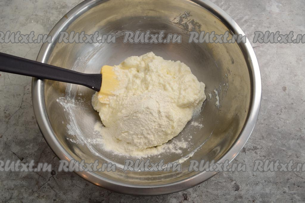 Влажность творога, размер яйца могут быть разными, а значит и муки может потребоваться добавить больше или меньше, поэтому, всыпая муку, ориентируйтесь на структуру замешиваемого теста.
