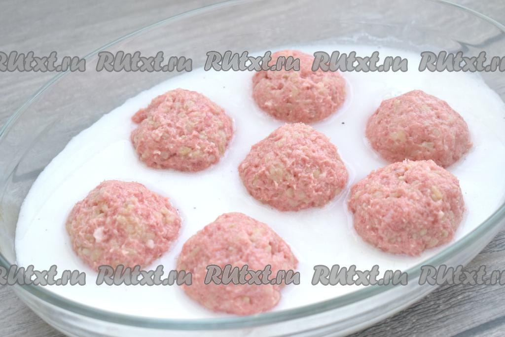 Сметану смешиваем с 400 миллилитрами тёплой кипячёной водой, солим, перчим по вкусу и выливаем получившийся сметанный соус в форму с тефтелями. Соус должен покрыть тефтели наполовину.