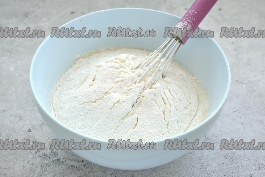 В получившуюся смесь просеиваем муку, перемешиваем.