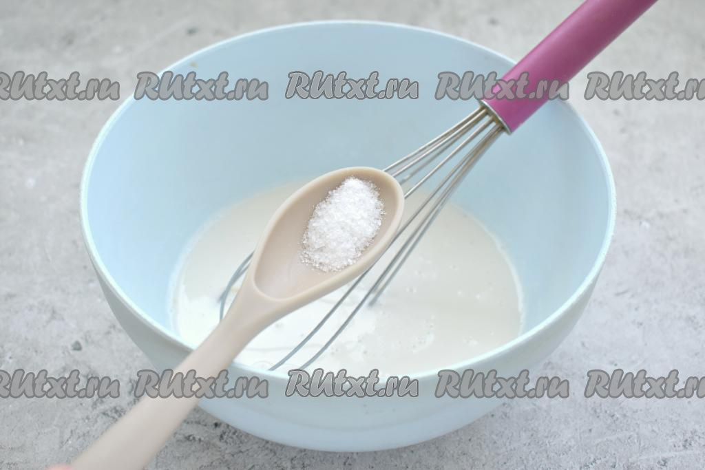 Спустя это время дрожжи активируются и поверхность дрожжевой смеси запенится. Всыпаем в дрожжевую смесь соль, перемешиваем венчиком.