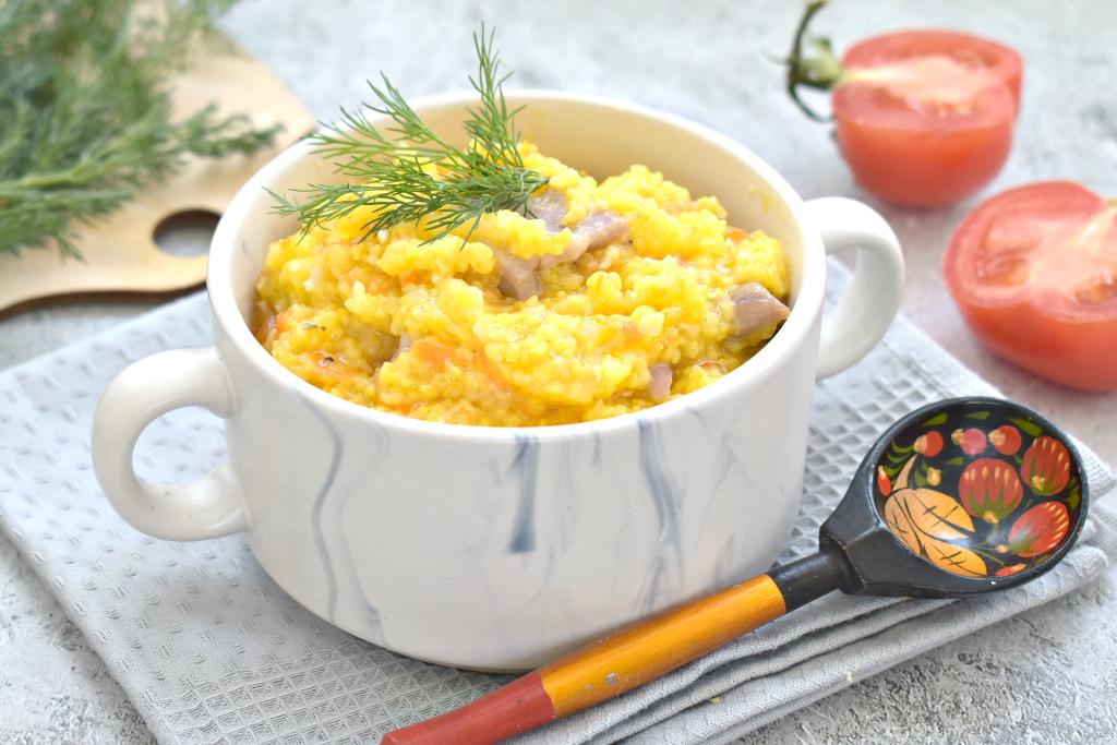 Кукурузная крупа богата клетчаткой, содержит немало веществ, необходимых нашему организму, поэтому блюда из неё полезны многим из нас. Для семейного обеда или ужина предлагаю приготовить кашу из кукурузной крупы с кусочками мяса курицы и овощами. Блюдо получается и вкусным, и аппетитным, и сытным. Такая кукурузная каша отлично разнообразит меню!