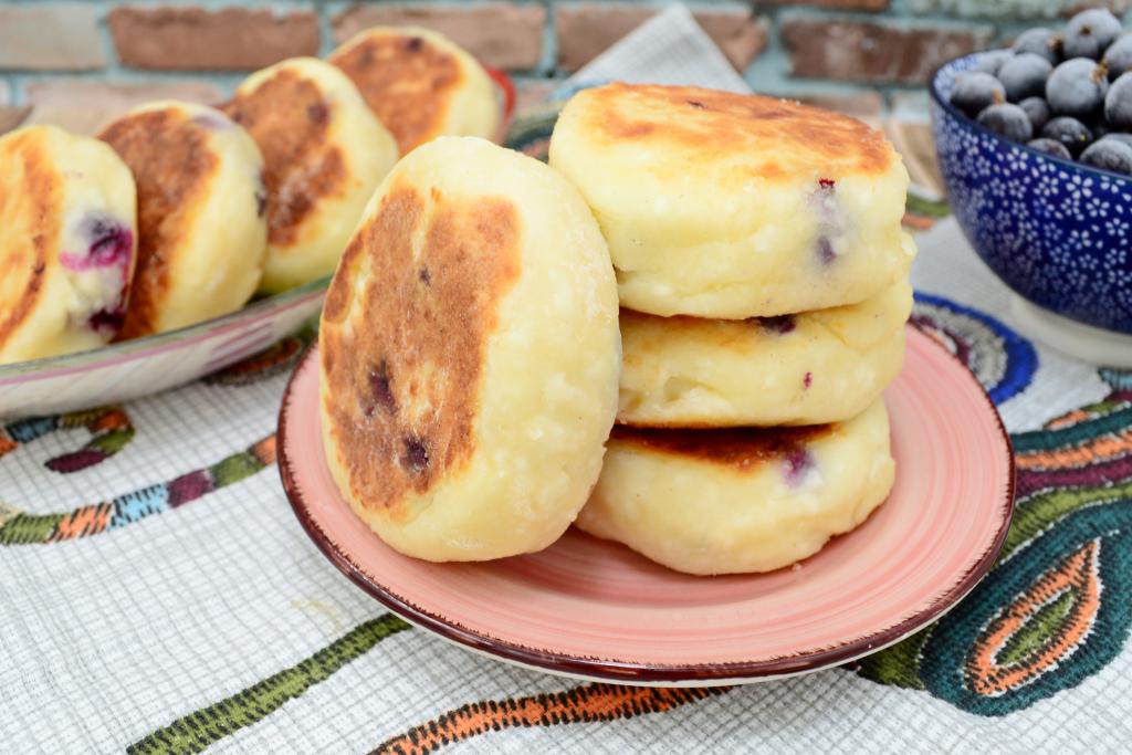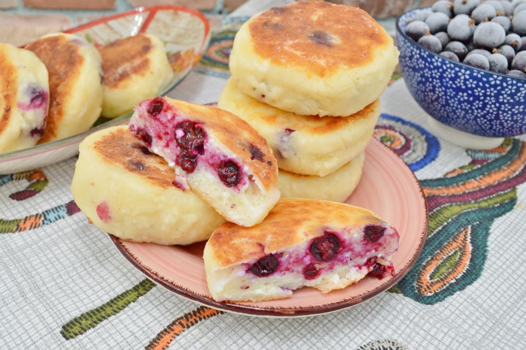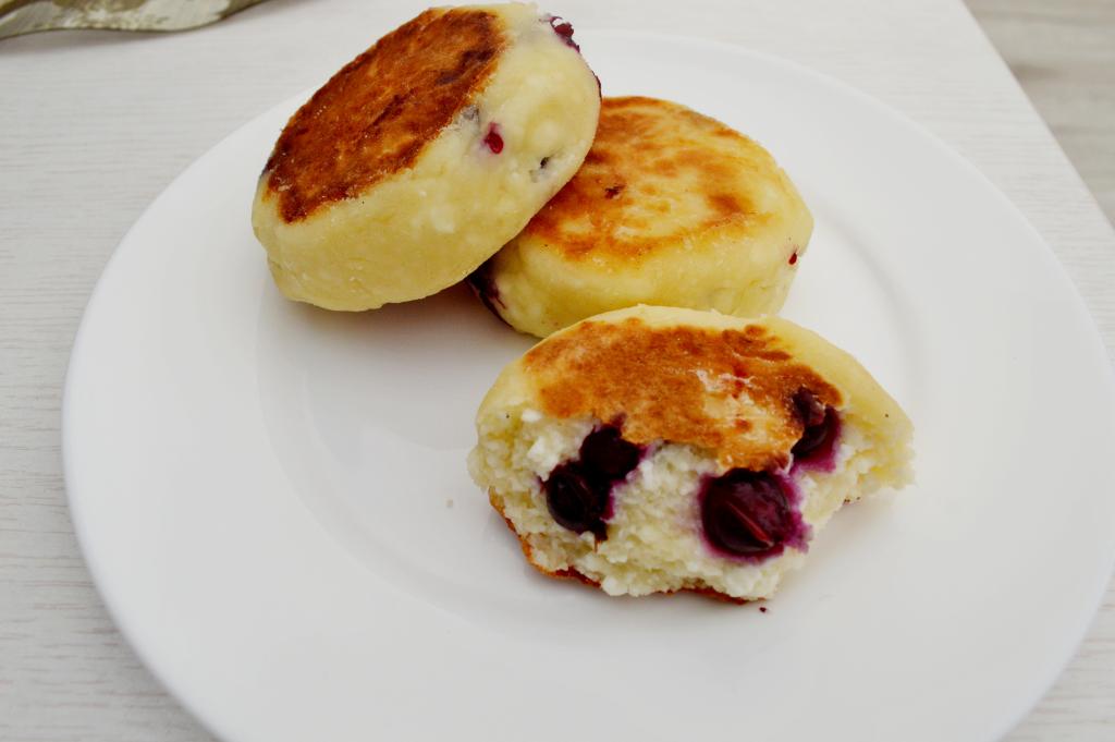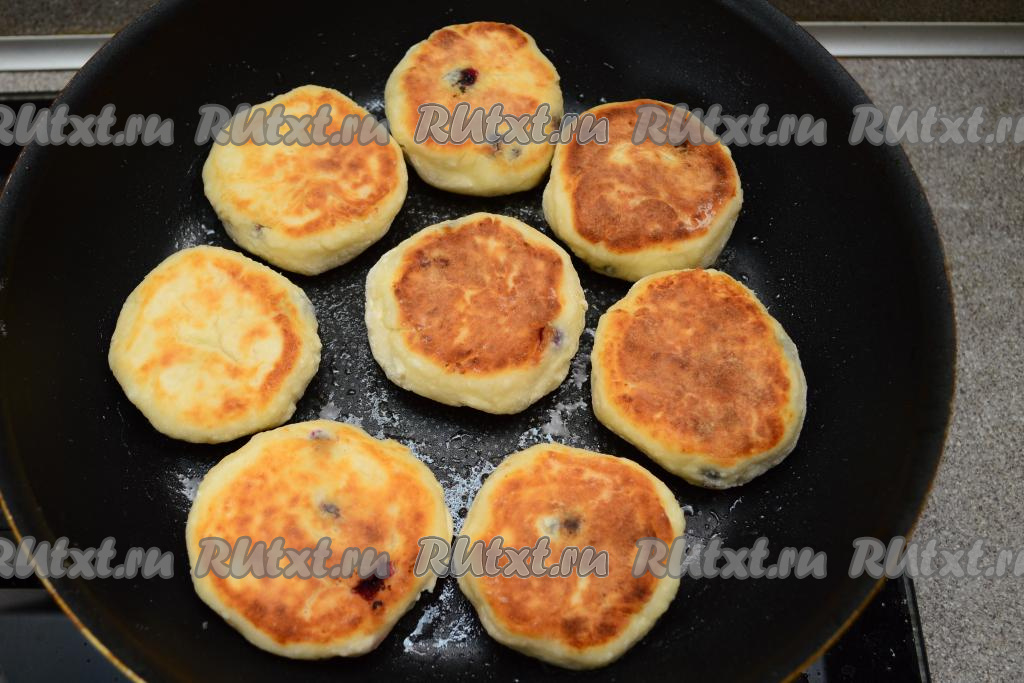 Формируя сырник, старайтесь, чтобы все ягоды были покрыты творожным тестом (то есть не торчали наружу), тогда готовые сырнички будут особенно аппетитными.