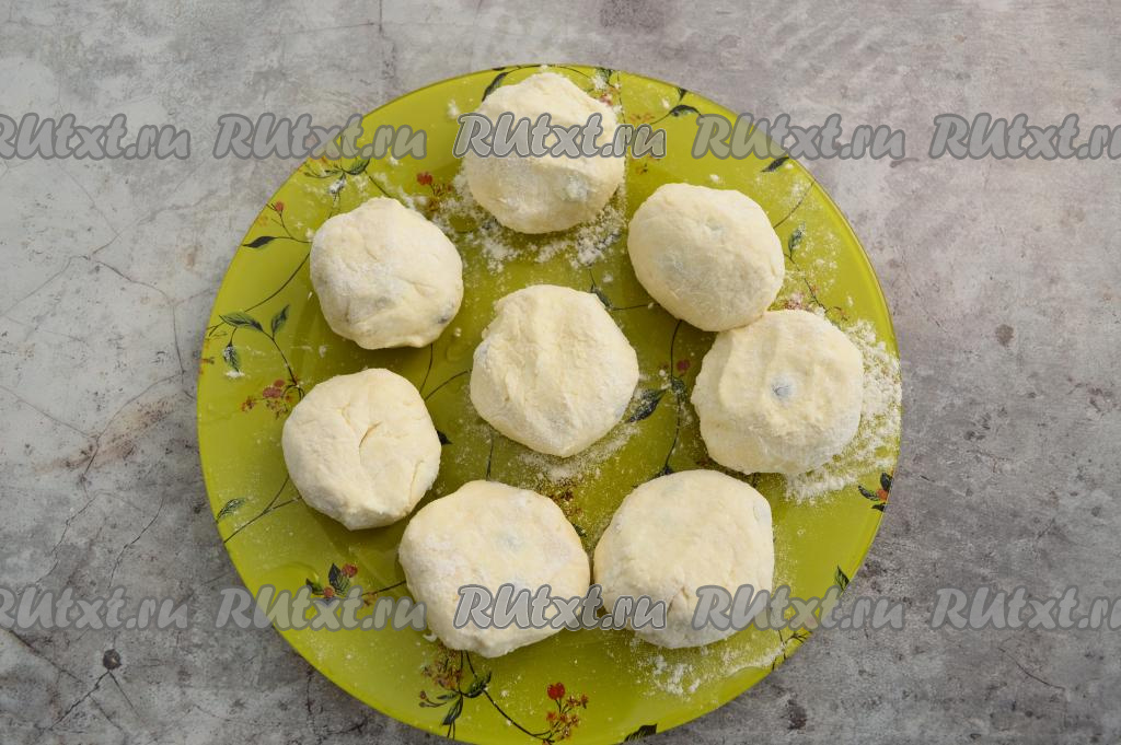 Аналогично сформировать и обвалять в муке все 8 заготовок сырников со смородиной.