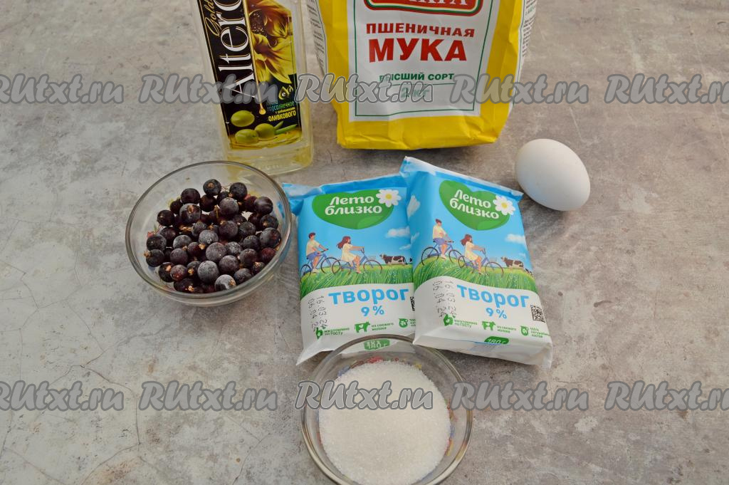 Подготовить продукты. Смородину можно взять замороженную или свежую. Я взяла чёрную смородину, но подойдёт и белая или красная смородина. Свежую смородину, отделив аккуратно от веточек, нужно промыть и обсушить. Замороженную смородину, если на ягодах нет большого количества льда, размораживать не нужно, просто достаньте её непосредственно перед замешиванием теста.