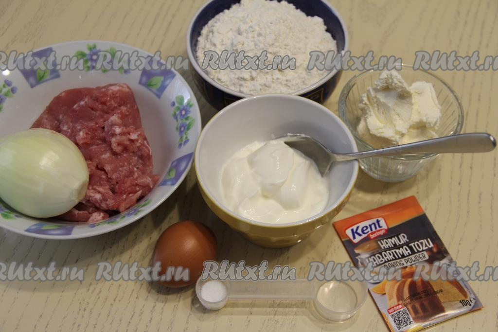 Подготовить продукты. Лук почистить. В качестве начинки для пирожков можно взять любой фарш, я взяла кусочки свинины и пропустила их через мясорубку.