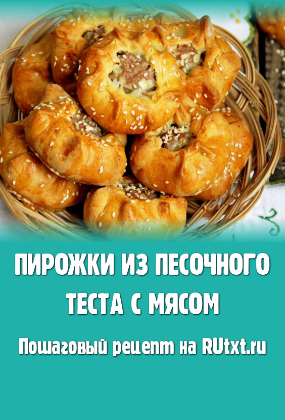 Вот такие красивые и очень вкусные пирожки из песочного теста с сочной начинкой из мяса получились.