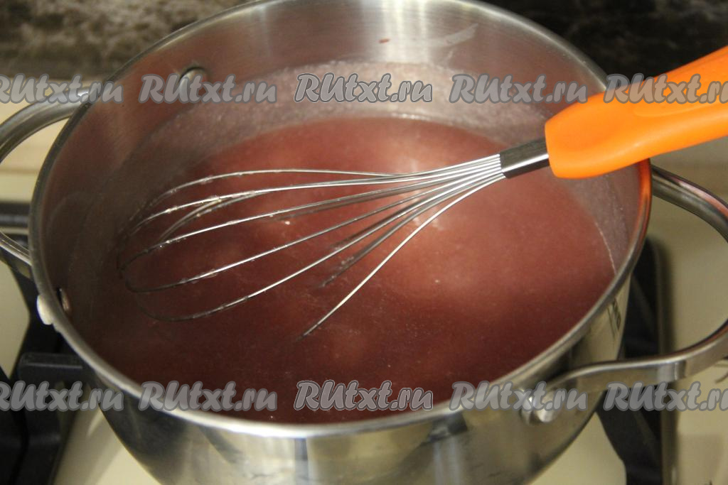 Постоянно помешивая, довести до кипения, если нужно всыпать сахар по вкусу, перемешать и варить на небольшом огне 5 минут, не прекращая перемешивать венчиком.