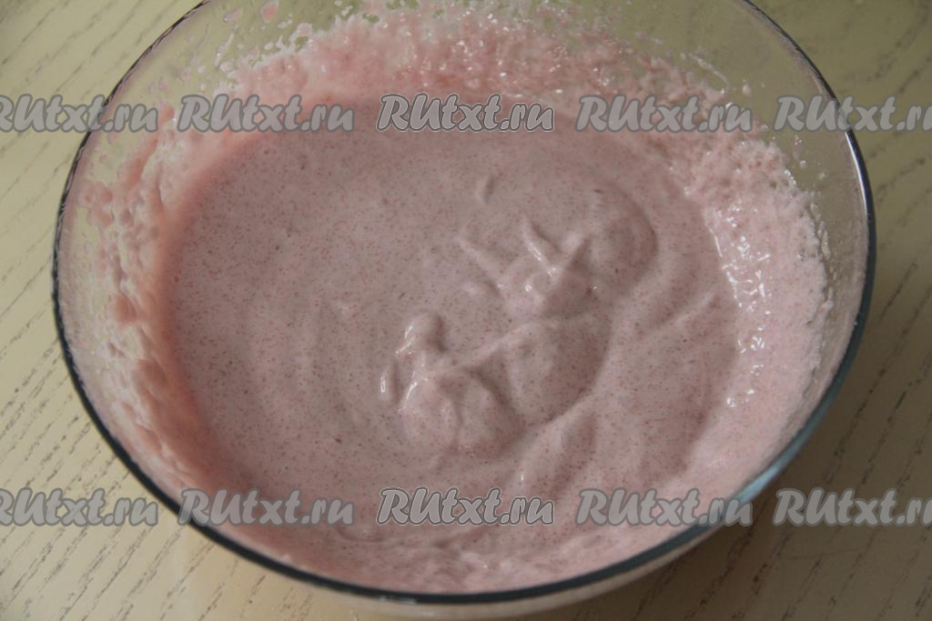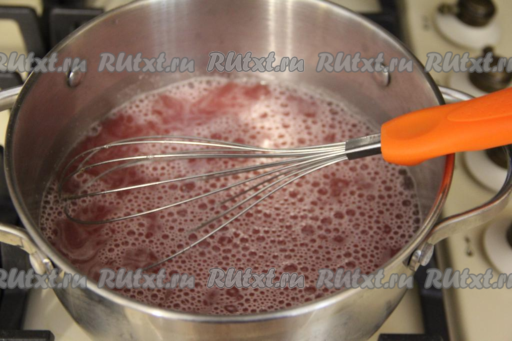 Остывшую смесь сока и манки взбить миксером в течение 5-7 минут. Мусс, получившийся в процессе взбивания, будет светлым и пышным.