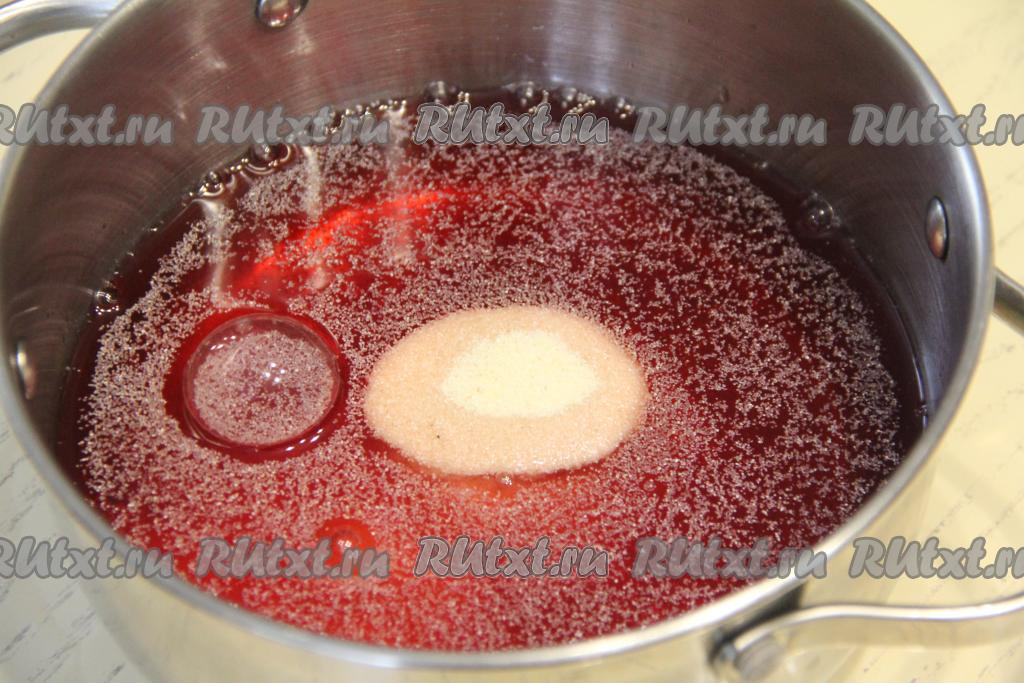Тщательно перемешать сок с манкой венчиком и поставить на средний огонь.