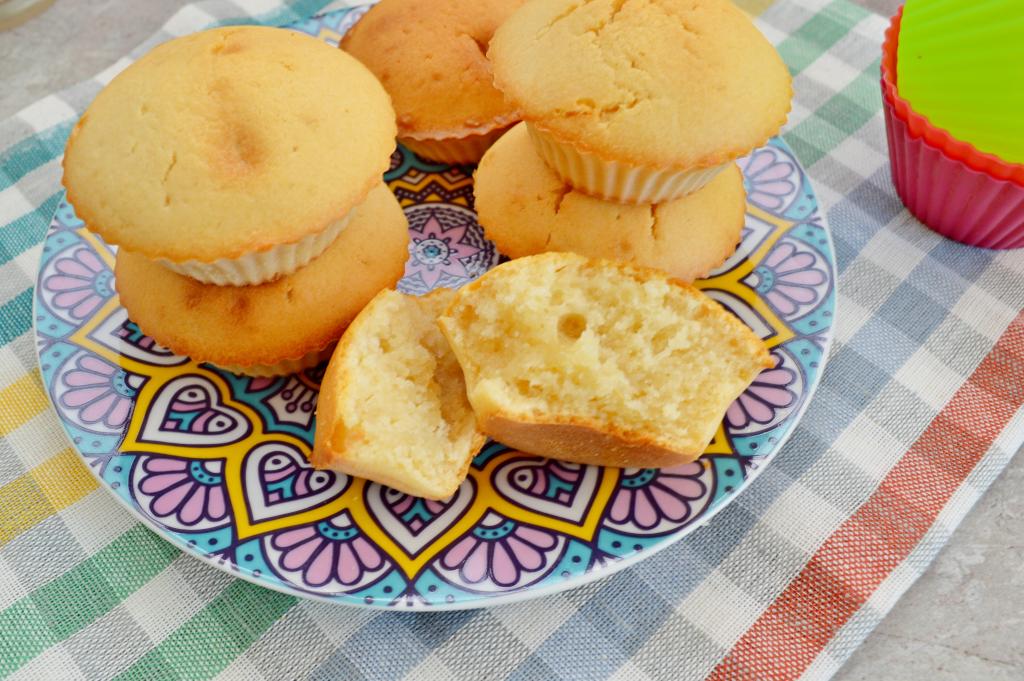 Противень с готовыми кексами достать из духовки. Из указанного количества ингредиентов у меня получилось 15 кексов. Дать им остыть минут 5, а затем вынуть из силиконовых формочек и можно подавать к столу. Кексы, замешанные на молоке, получаются аппетитными, в меру влажными и вкусными.