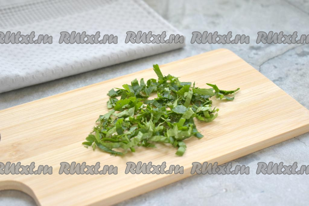 Свежую зелень моем, нарезаем и тоже добавляем в миску.