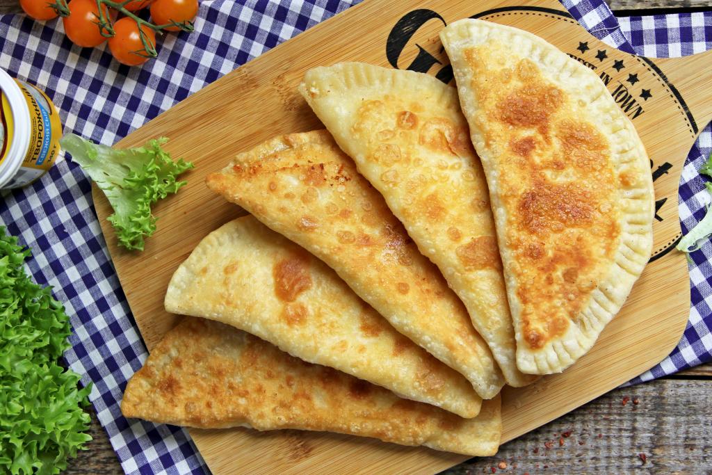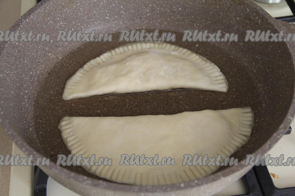 Жарить чебуреки на среднем огне с двух сторон до золотистого цвета.