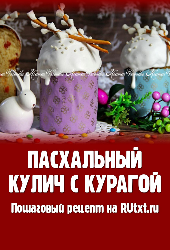 Пасхальные куличи с курагой выпекать в разогретой духовке при температуре 190 градусов минут 40. Готовность проверить, проколов кулич сверху сухой деревянной шпажкой (если шпажка останется сухой после прокалывания кулича, значит доставайте выпечку из духовки). Продолжительность выпечки зависит от размеров куличей и особенностей вашей духовки.