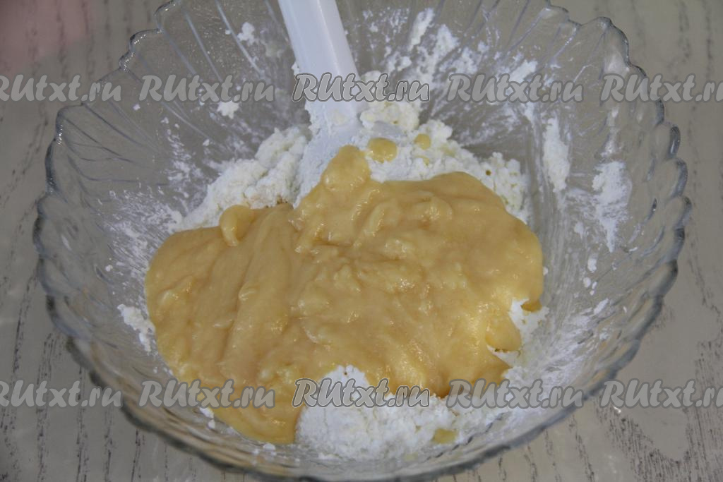 В творожную массу добавить остывшую заварную массу.