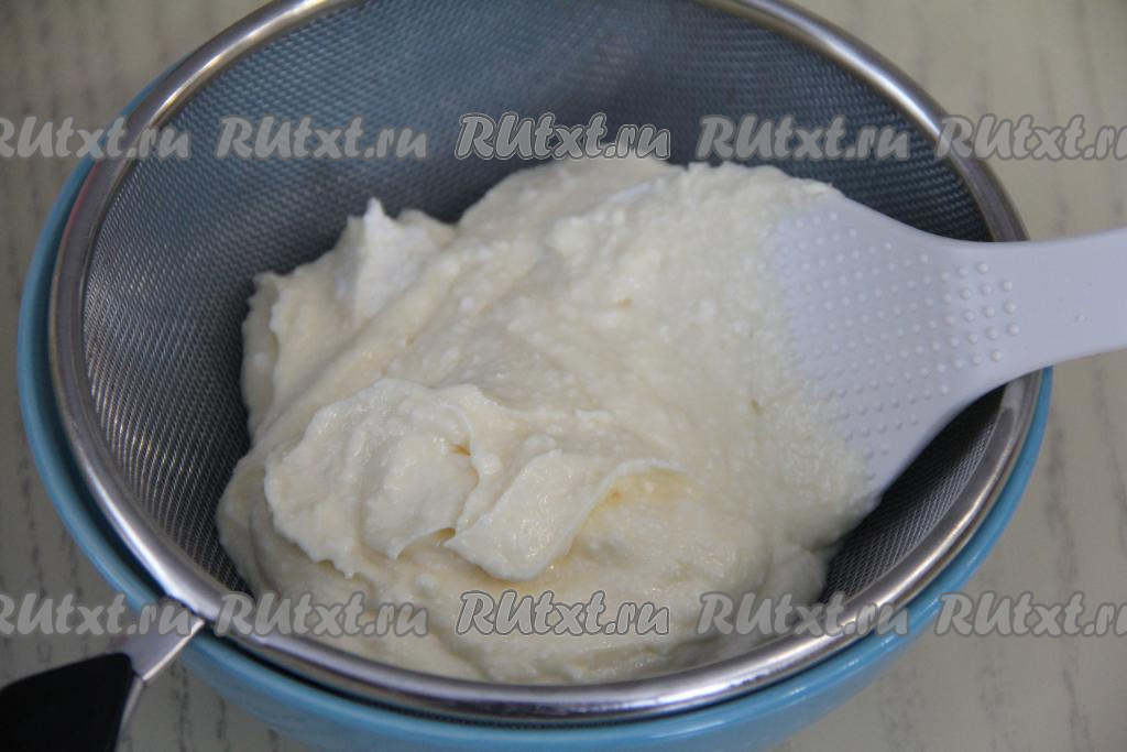 Затем однородную творожно-заварную массу перетереть через сито.