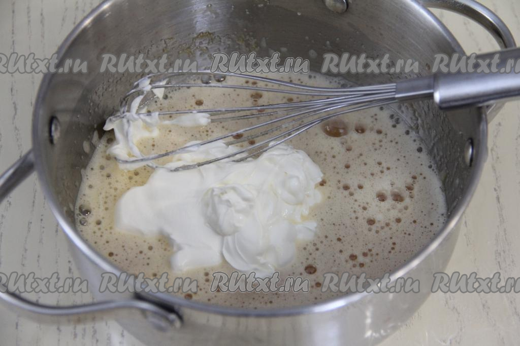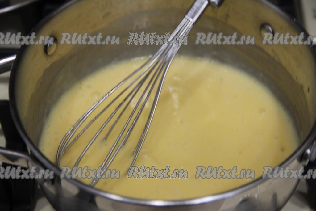 Перемешать массу венчиком и поставить на средний огонь.