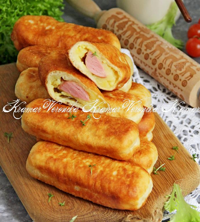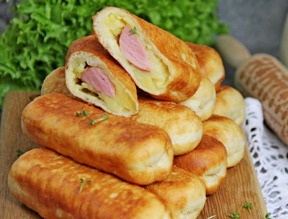 Аппетитные, вкусные, нежные жареные пирожки с начинкой из картошки и сосисок подать к столу в горячем виде, хотя и после остывания эта выпечка очень хороша!