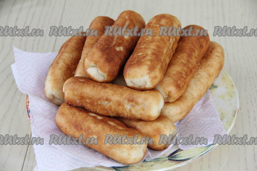 Готовые пирожки перекладывать со сковороды на бумажное полотенце, чтобы убрать излишки масла. В несколько приёмов пожарить все пирожки, подливая по мере необходимости масло в сковороду.