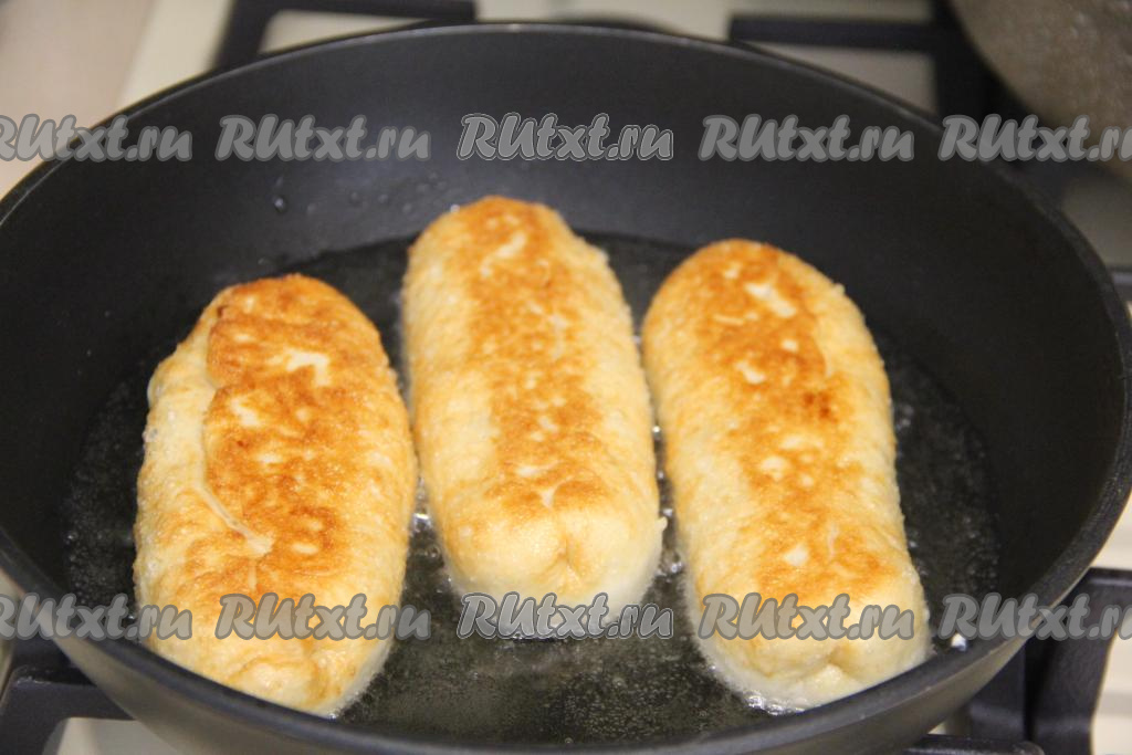Жарить пирожки с двух сторон до золотистого цвета на среднем огне.