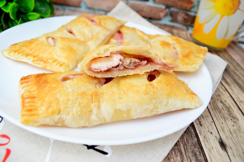 Готовые слойки можно подавать к столу и тёплыми, и полностью остывшими.