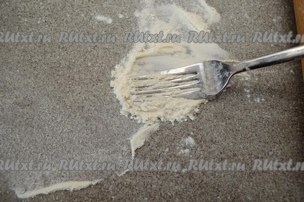 Для того чтобы вилка не приставала к слоёному тесту, я "припудриваю" вилку в муке.
