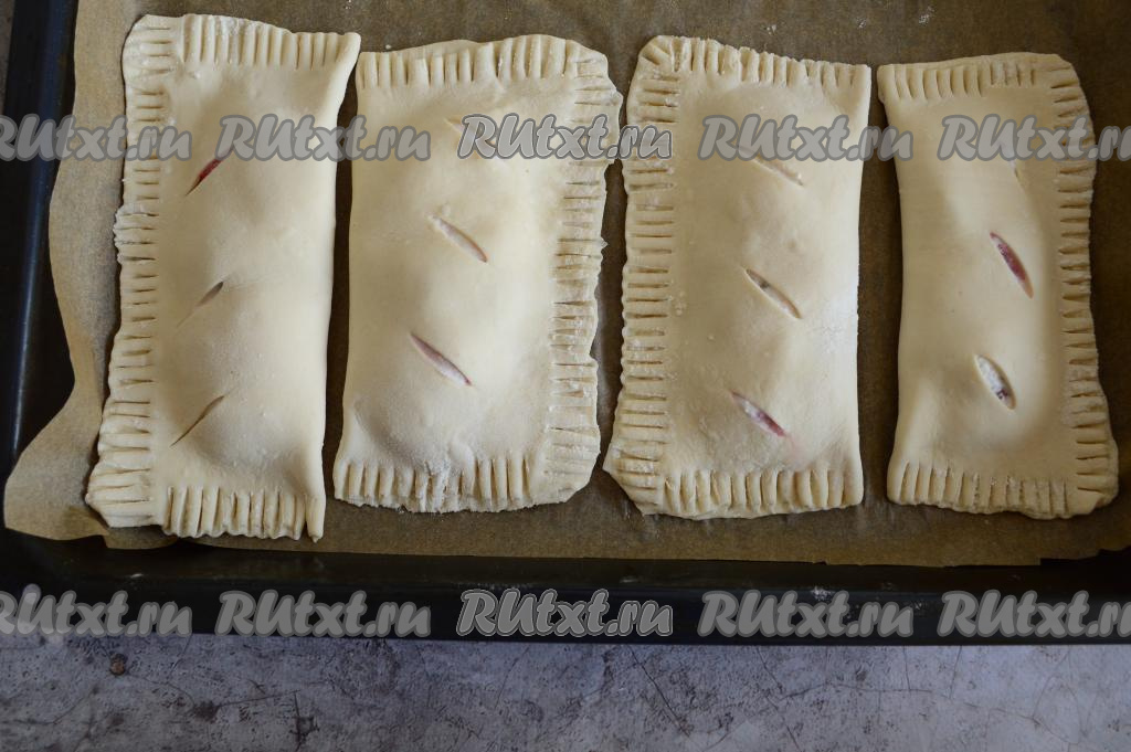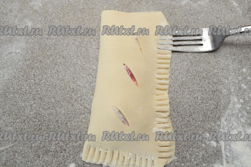 Вилкой скрепить края слойки с трёх сторон.