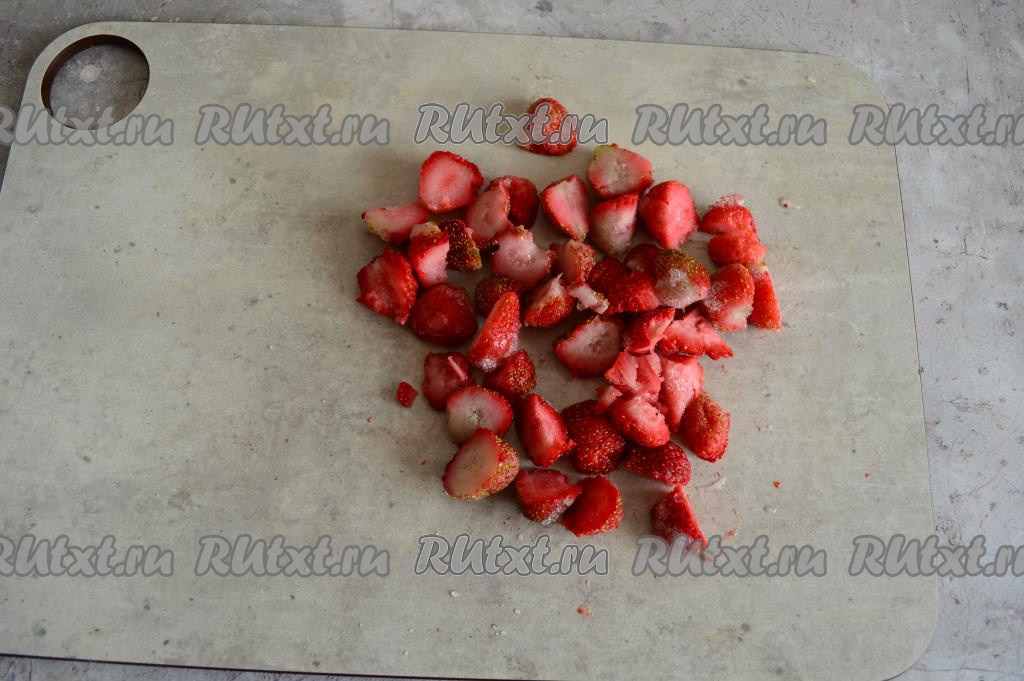 Клубнику нарезать на небольшие кусочки.