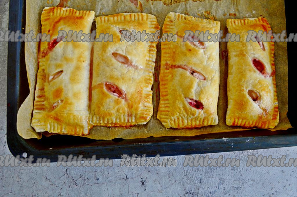 Отправить противень в духовку, разогретую до 200 градусов. Выпекать слойки с творогом и клубникой минут 20-25 (до румяности).