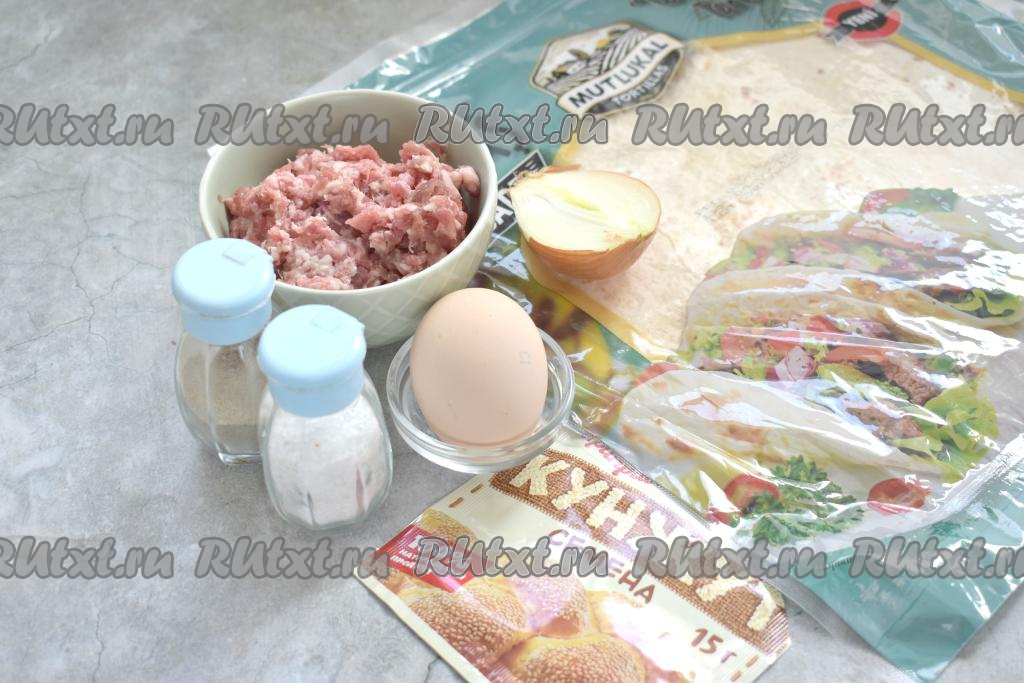 Вот такие ингредиенты потребуются для приготовления тортильи с фаршем в духовке.